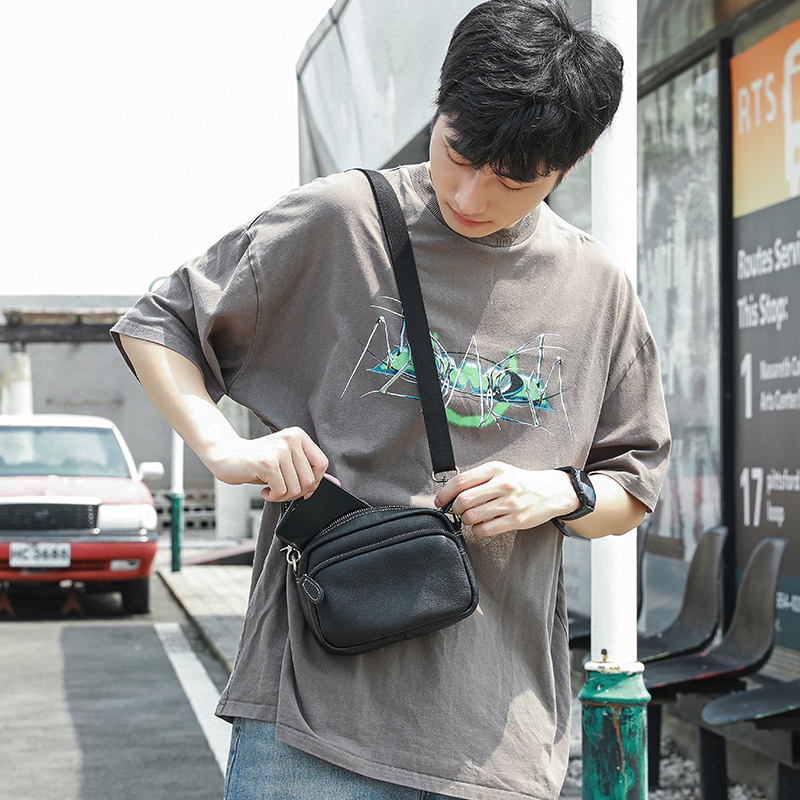 Korean version Men's single shoulder diagonal satchel head layer of cow leather small pocket Summer Fashion Yoko mobile phone bag genuine leather men's bag