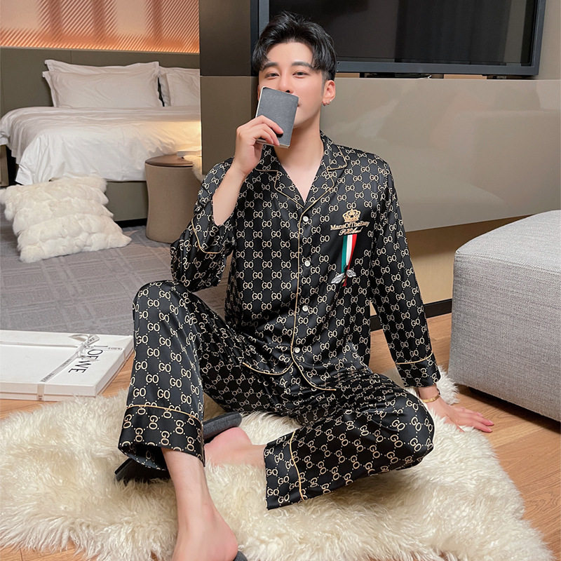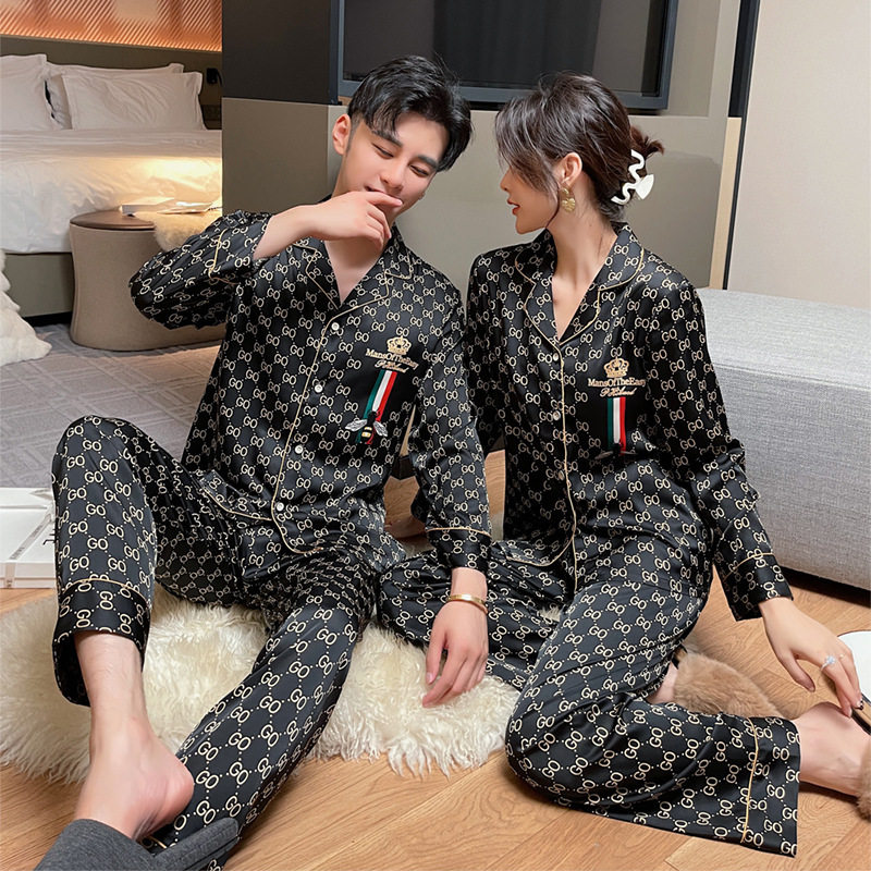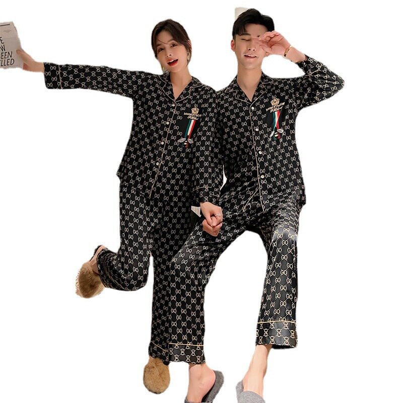 New Fall Silk Lovers Pyjamas Ladies Suit Fashion Extravagant Casual Cardiovert Can Outwear Men's Home Clothing