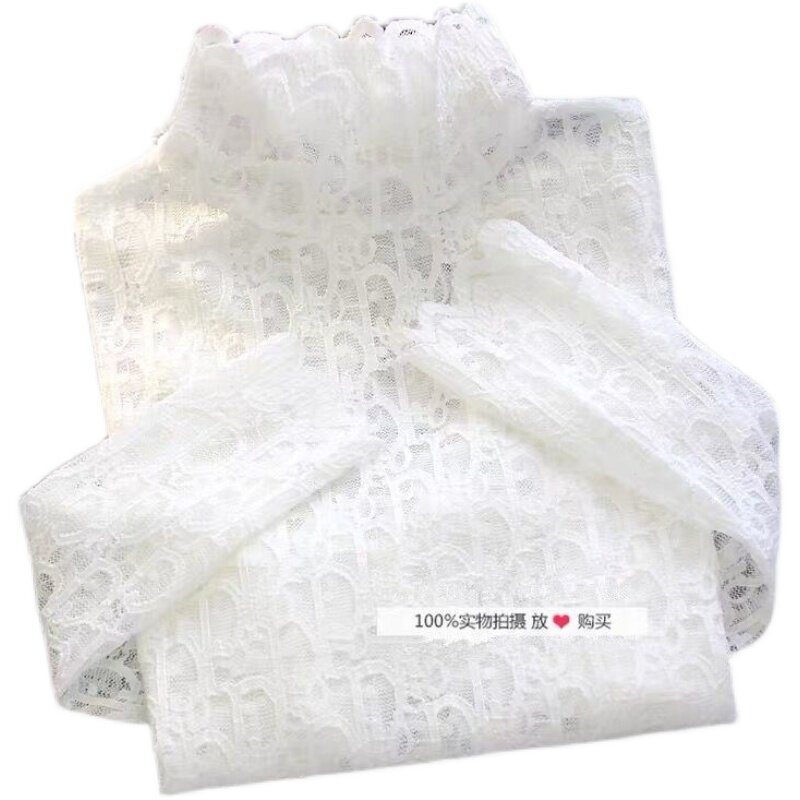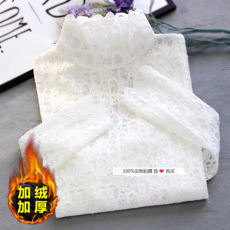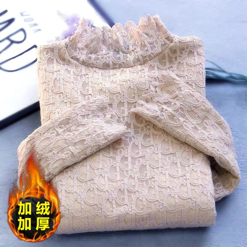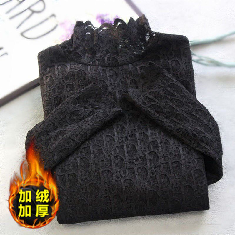 Korean version long-sleeved thin section European station lady's large size plus velvet half turtleneck lace with hollowed-out age-reducing bottoming shirt women