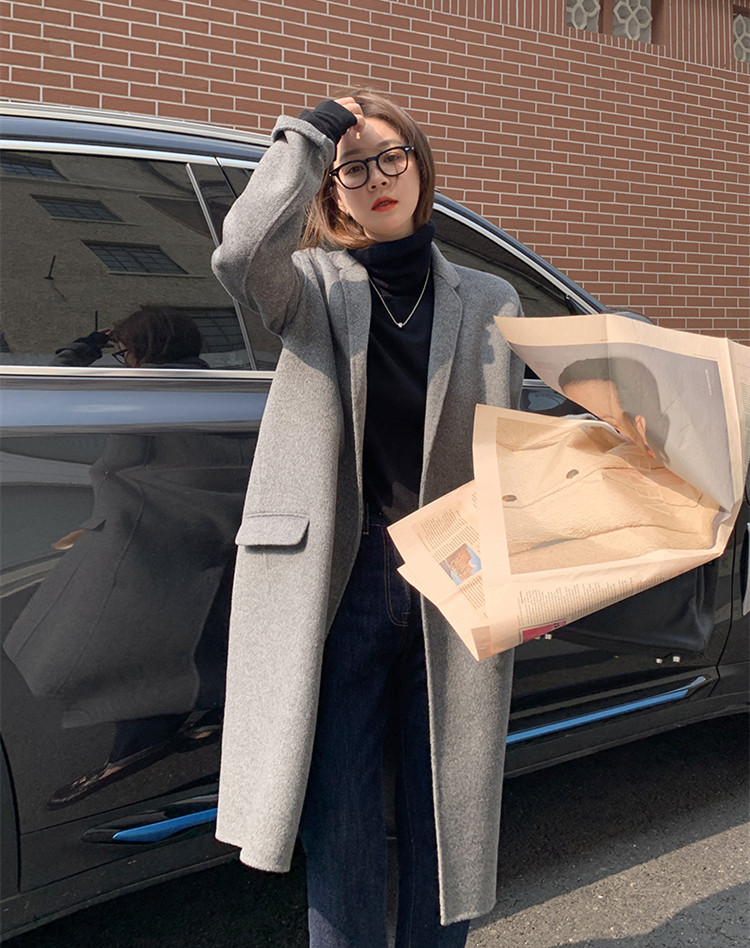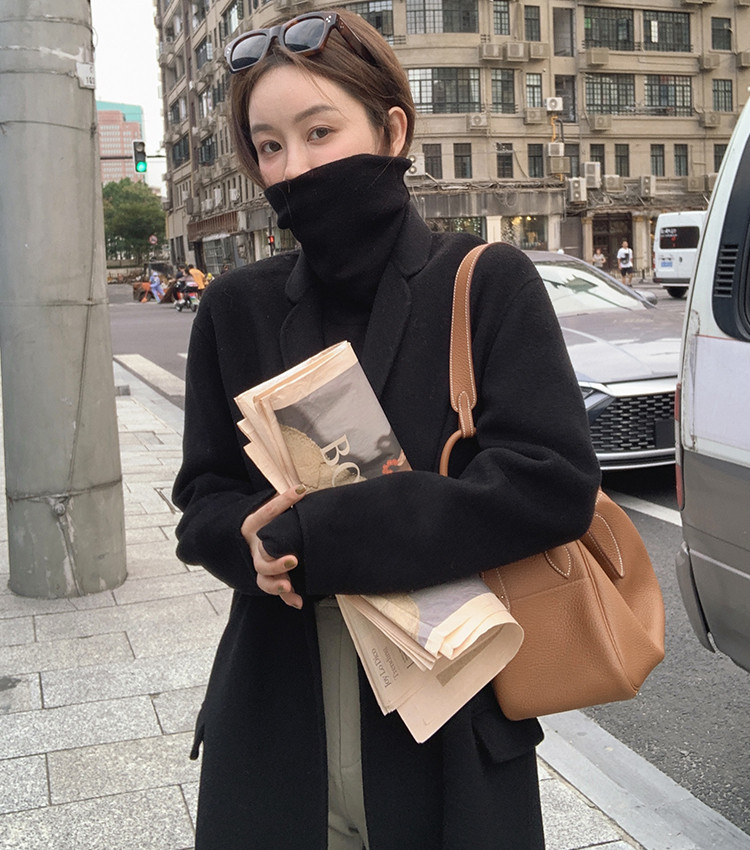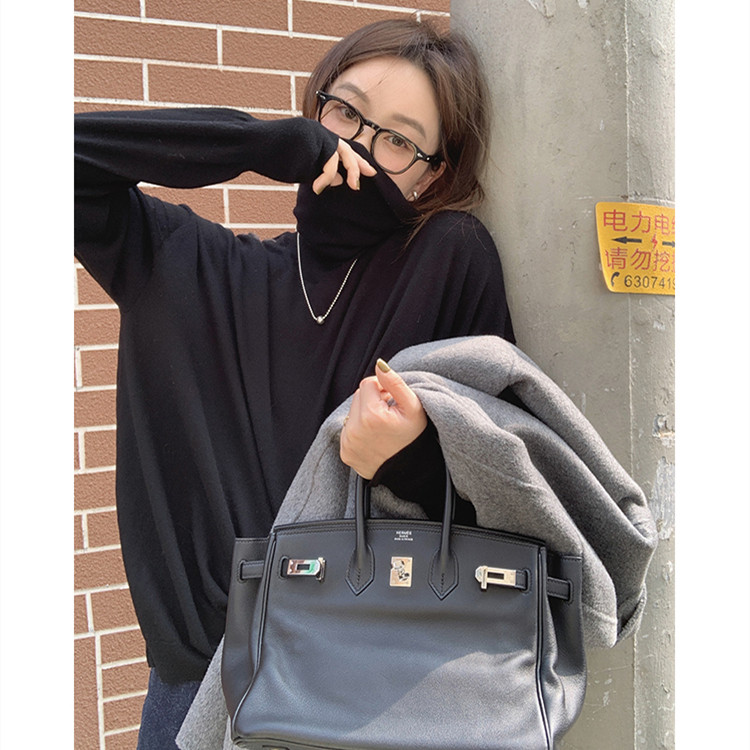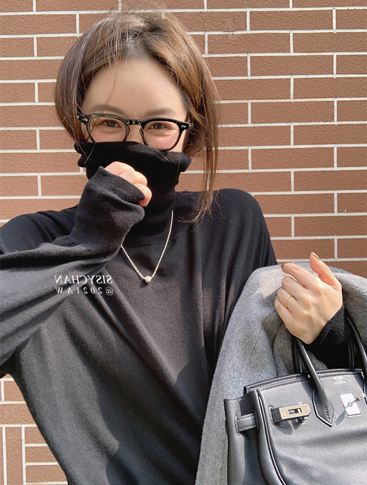 Large yards of fat sister mm autumn and winter black knitting high - collar blouse loose and thin and thin coat 200 pounds