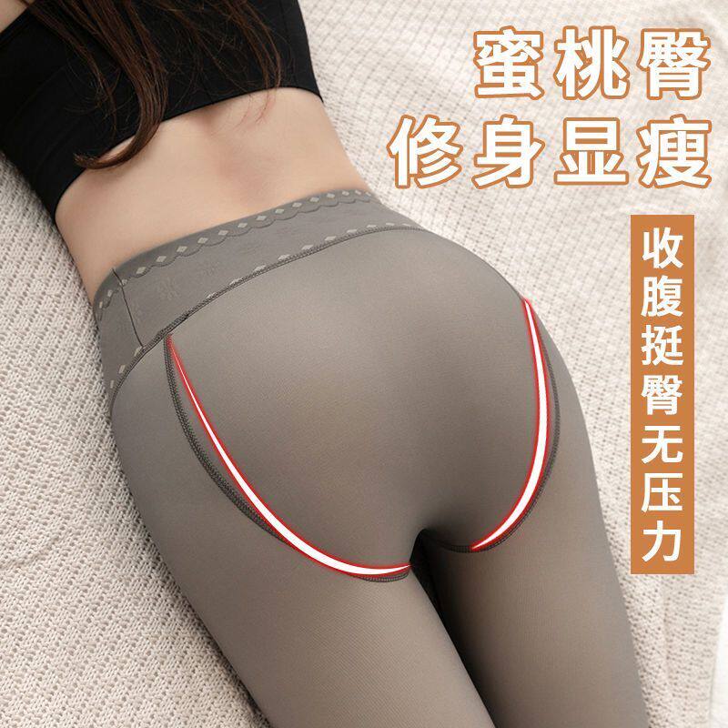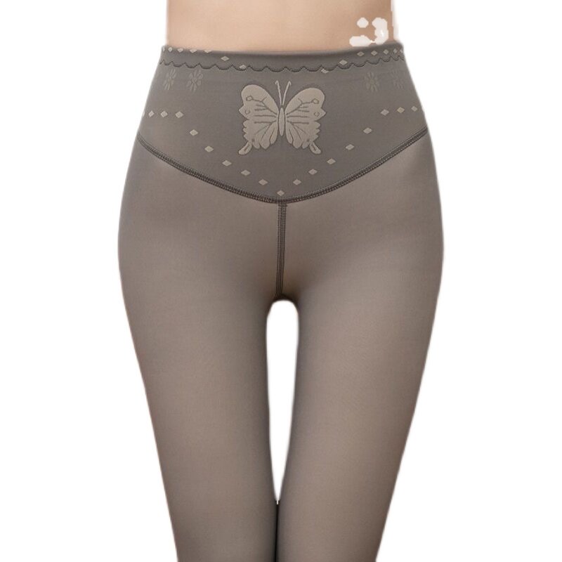 Winter Butterfly Socks Waist Stewardess Gray Leggings Women's All-in-One Transparent Pants High Waist Abdomen Plus Velvet Thick Hip Lifting Pants