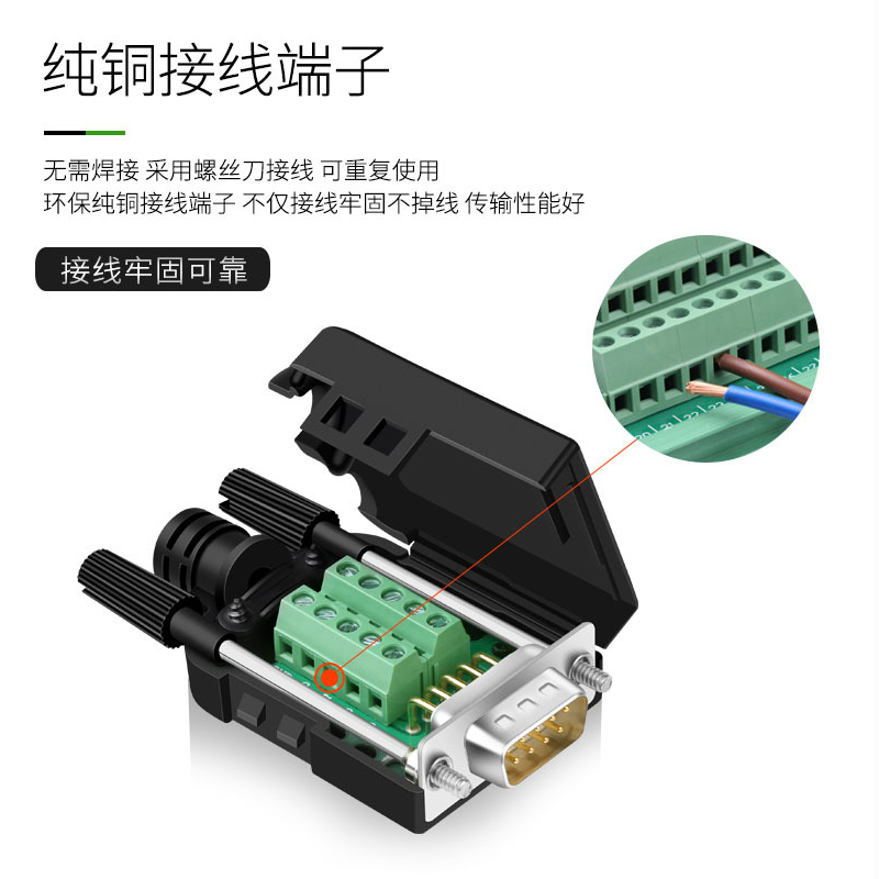 Thin DB9 solder-free head Thin DP male and female RS485 RS232 9-pin touch screen PLC