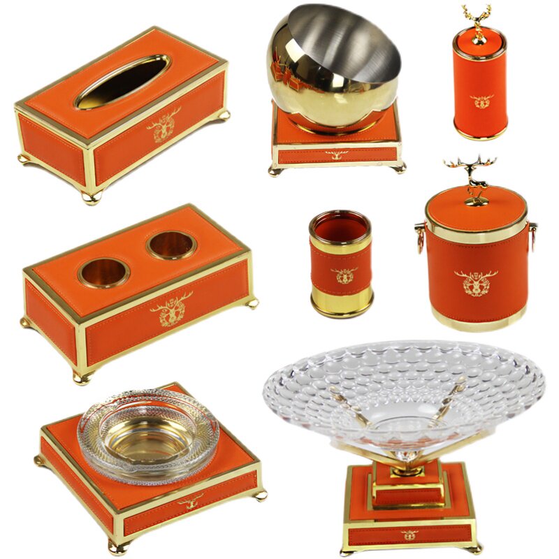 Bar KTV table supplies leather tissue box alloy microphone rack fruit tray rack ashtray desktop decoration full set
