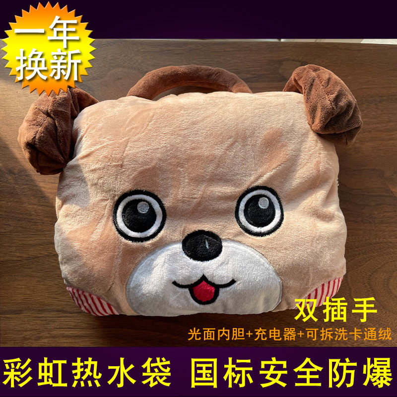 Rechargeable hot water bag cartoon rechargeable rainbow brand electric hot water bag hand warmer treasure soup woman winter electric warm bag plush