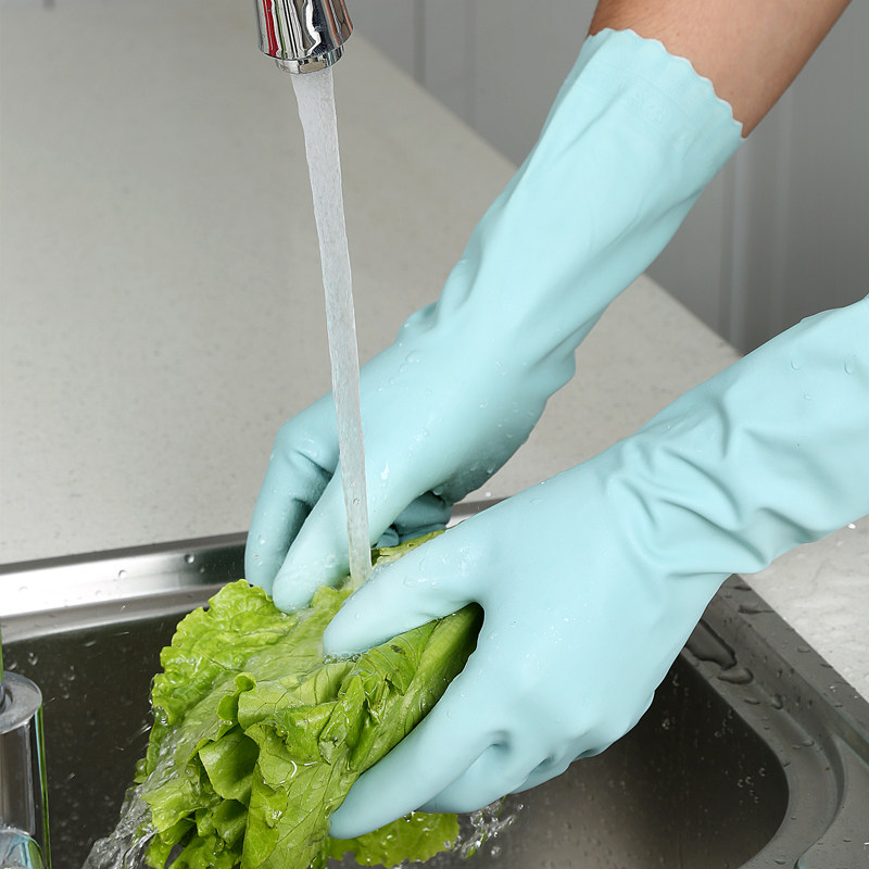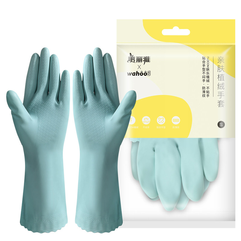 Beautiful Elegant Gloves Housekeeping Kitchen pro-skin flocking dishwashing waterproof and warm suede Durable Wear Gloves