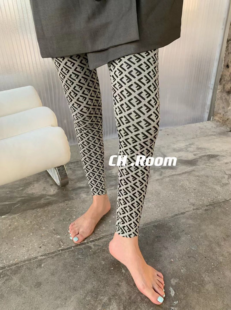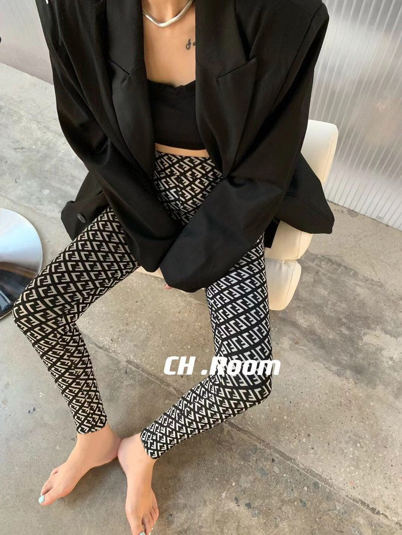 2023 Spring full printing nine pure cotton bullet bottle tight waist and waist and repair slim foot pants