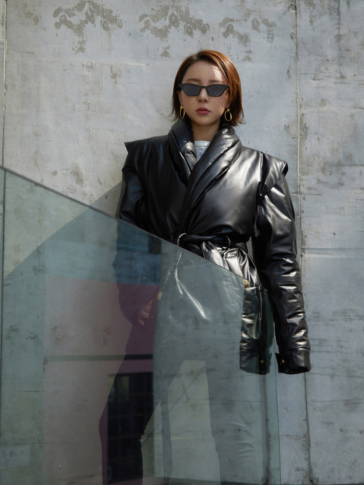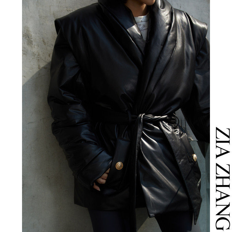 Z boss 95 white goose down detachable sleeve genuine leather horse chia fake two pieces of sheep leather green fruit collar Long version down clothes woman