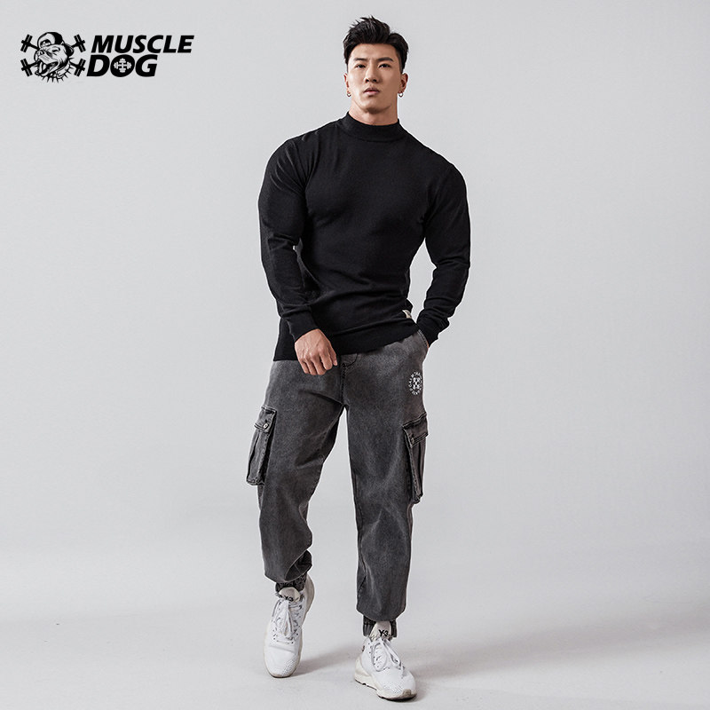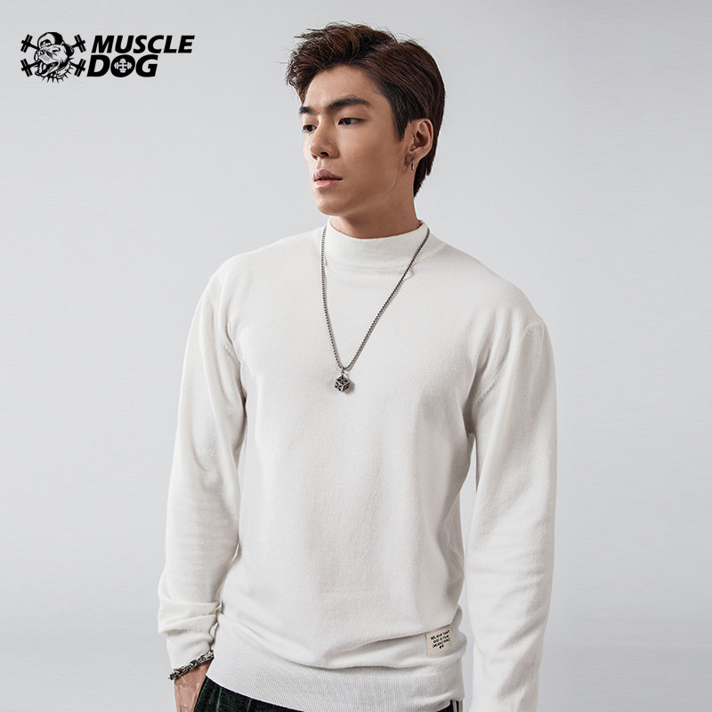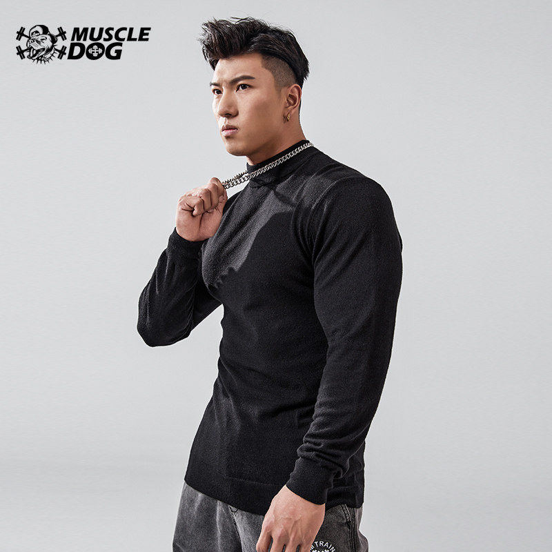 Muscle dog Fall and Winter Current Sweater semi - tall foundation simple pure - colored body - knitted sweater male