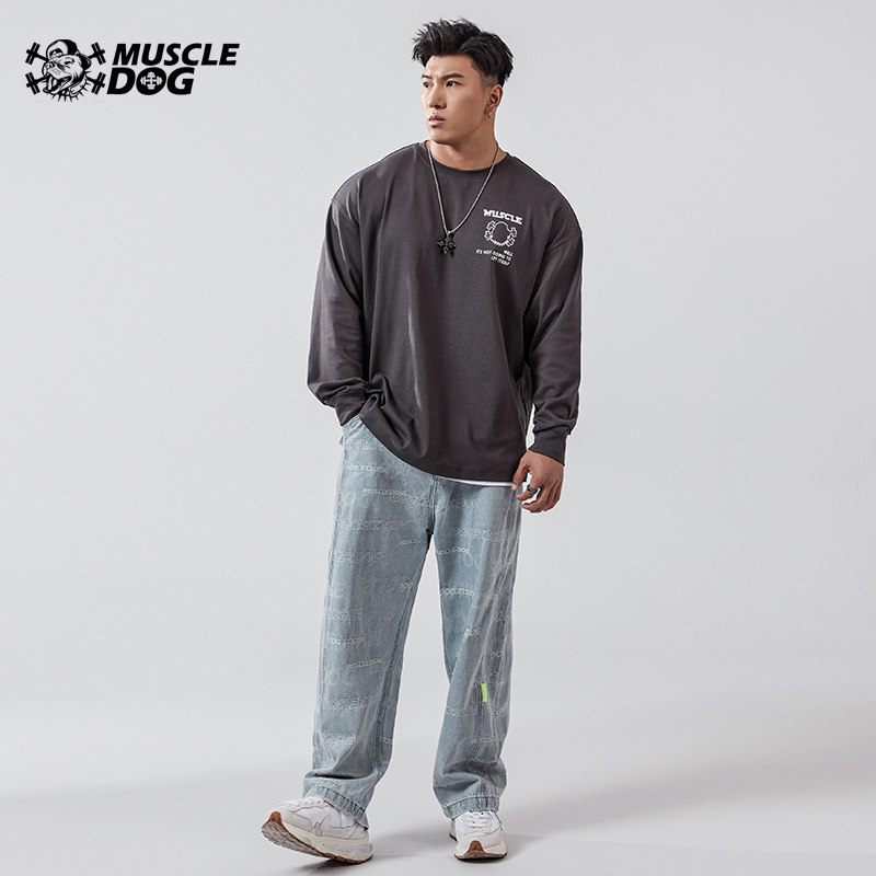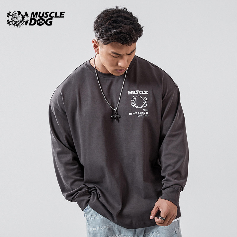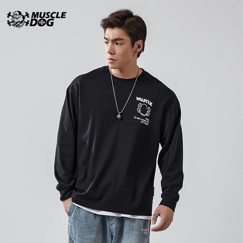 Muscle dog exercise leisure long sleeve T - shirt men autumn winter tide lax lax collar training clothes