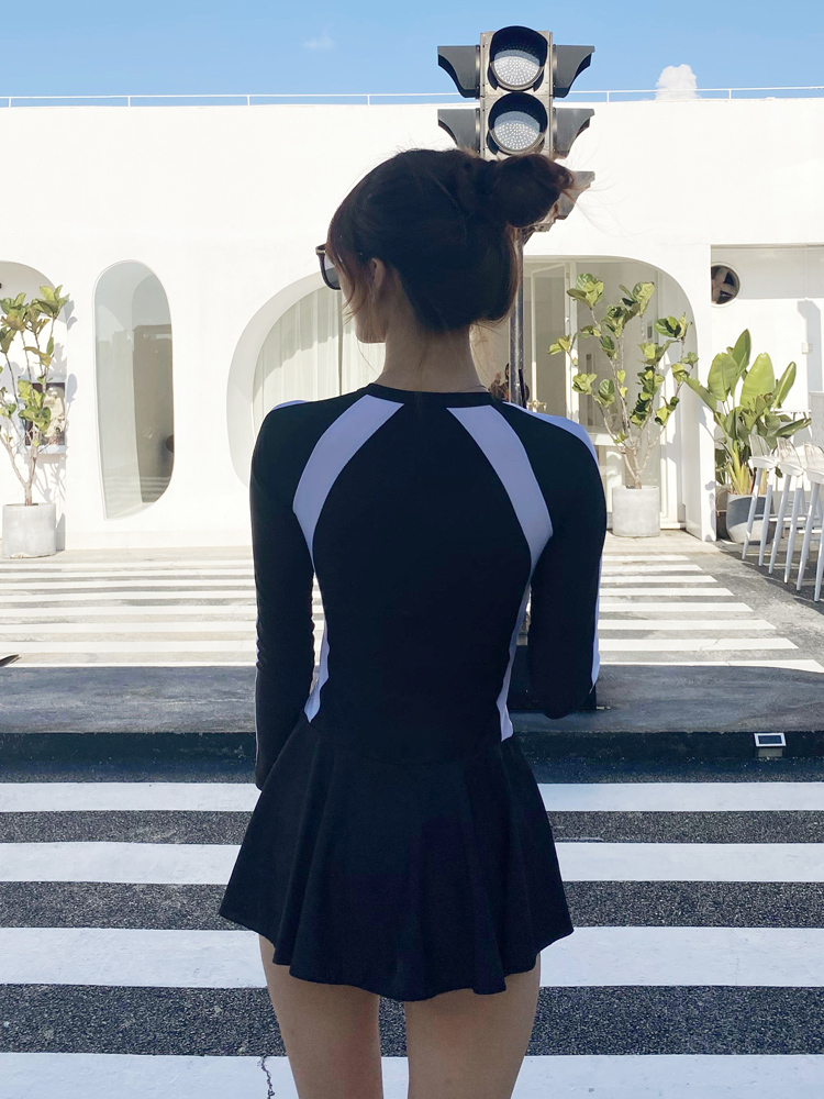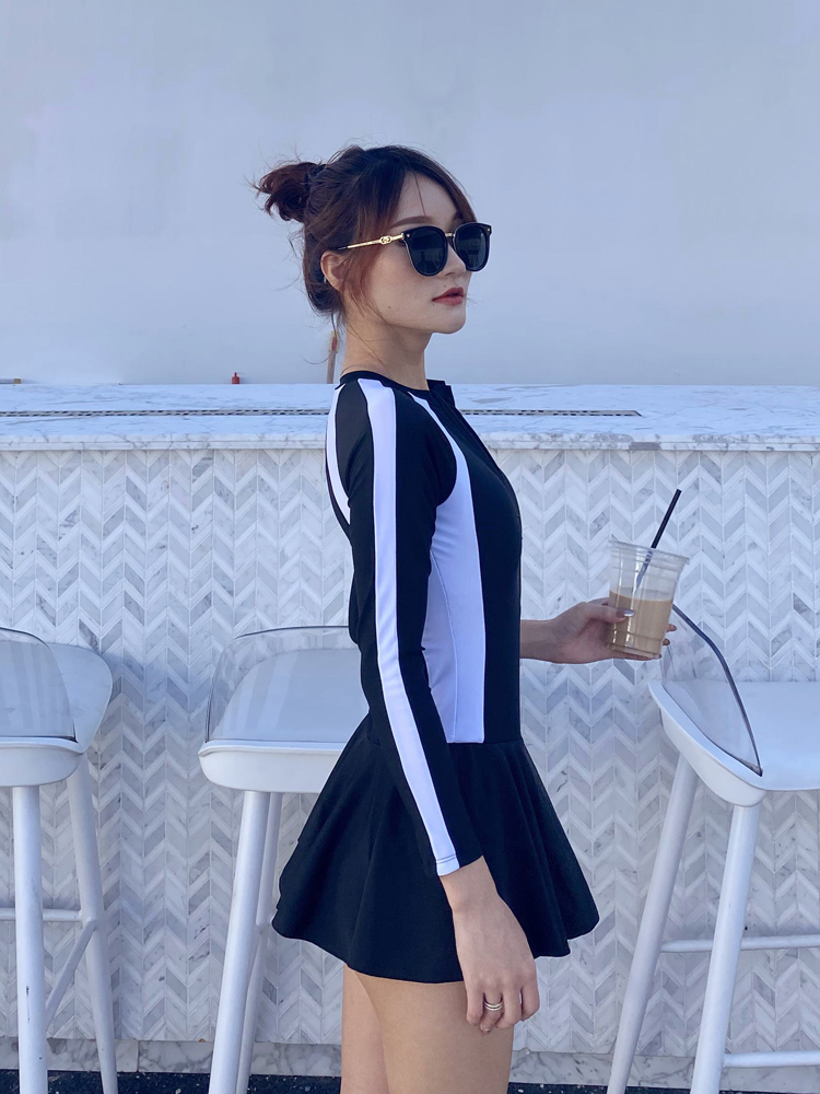 One-piece swimsuit women's boxer conservative cover belly thin long-sleeved sunscreen 2021 new skirt-style hot spring swimsuit women