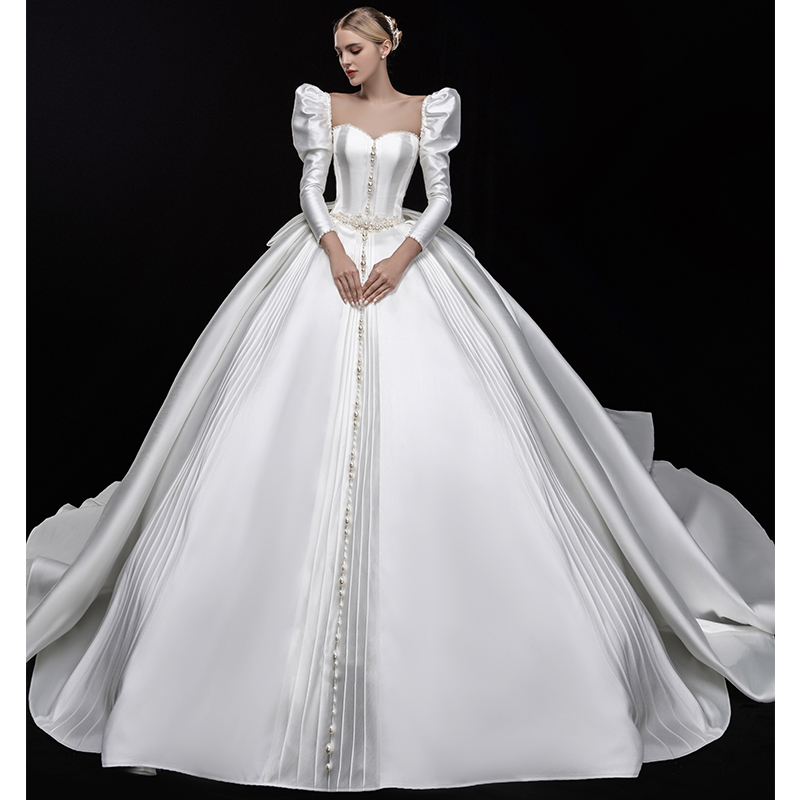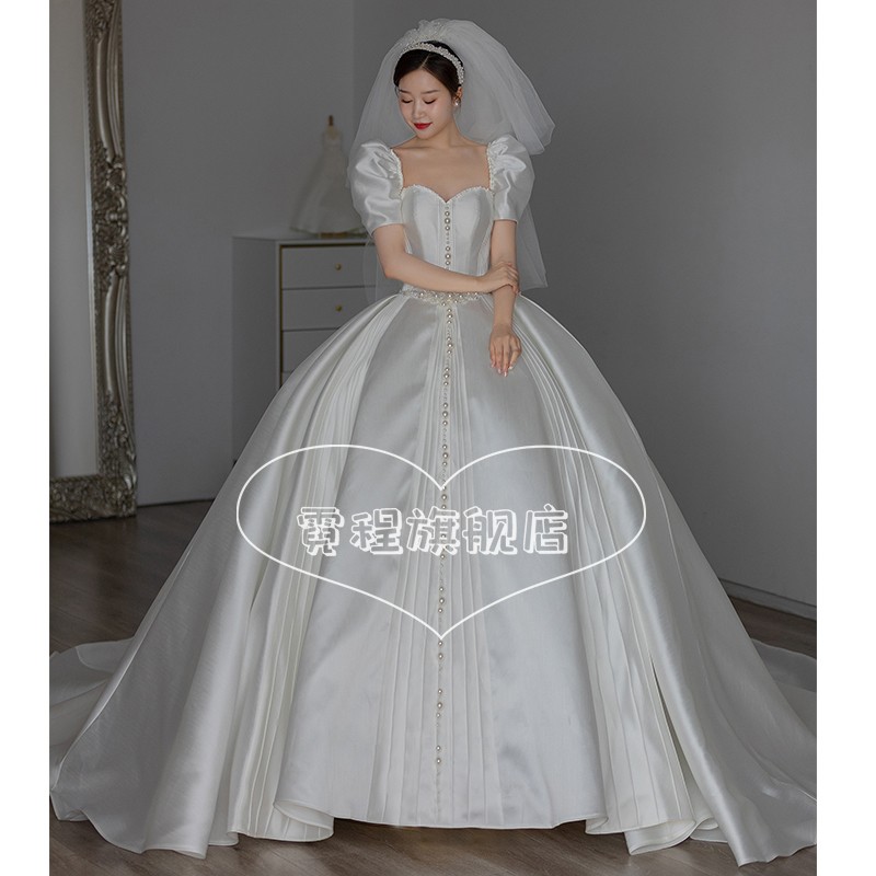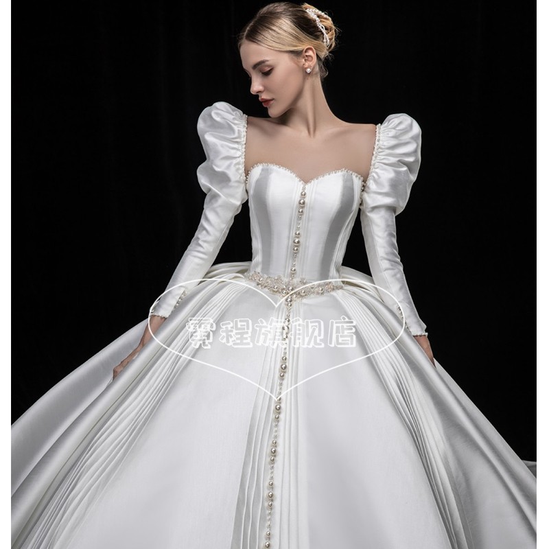 White Qi (send 4 meters of plain veil skirt support) to send long and short sleeves White trailing (send 4 meters of plain veil skirt support) to send long and short sleeves