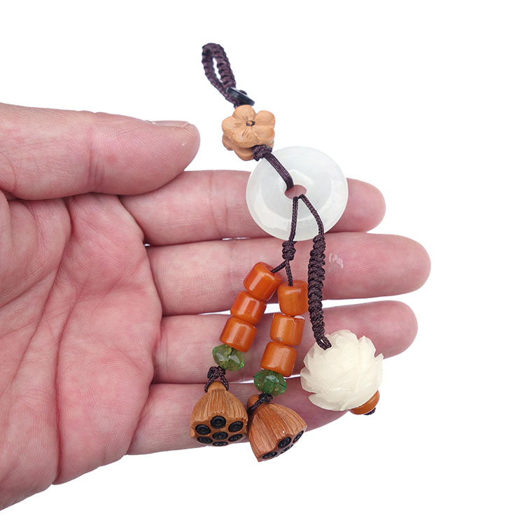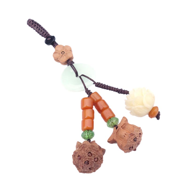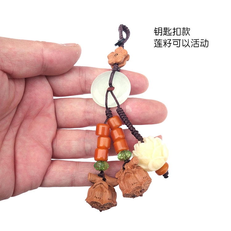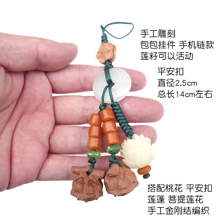 Peach Wood Lotus Bodhi Lotus car key buckle pendant adorable short phone sling pendant pendant male and female lovers hang up