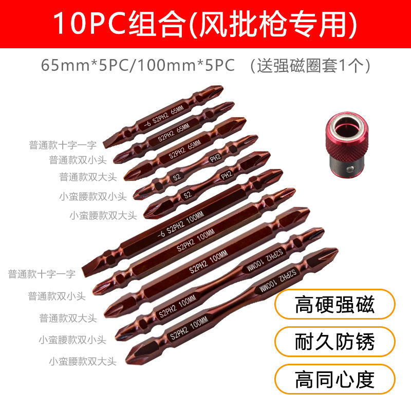 10 pieces-pneumatic screwdriver special 10 pieces-electric drill special 3 pieces of cover 1 magnetic ring 4 pieces 1 magnetic ring 5 pieces 1 magnetic circle Professional class 65mm batches of heads (recommended) 1 industry