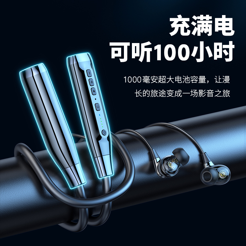 (4 speakers heavy bass) can listen to 100 hours of halter neck bluetooth headset endurance super long sports neck hanging wireless typec charging high-end game noise reduction men's 2021 new model