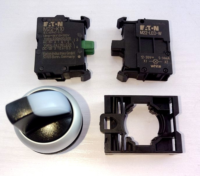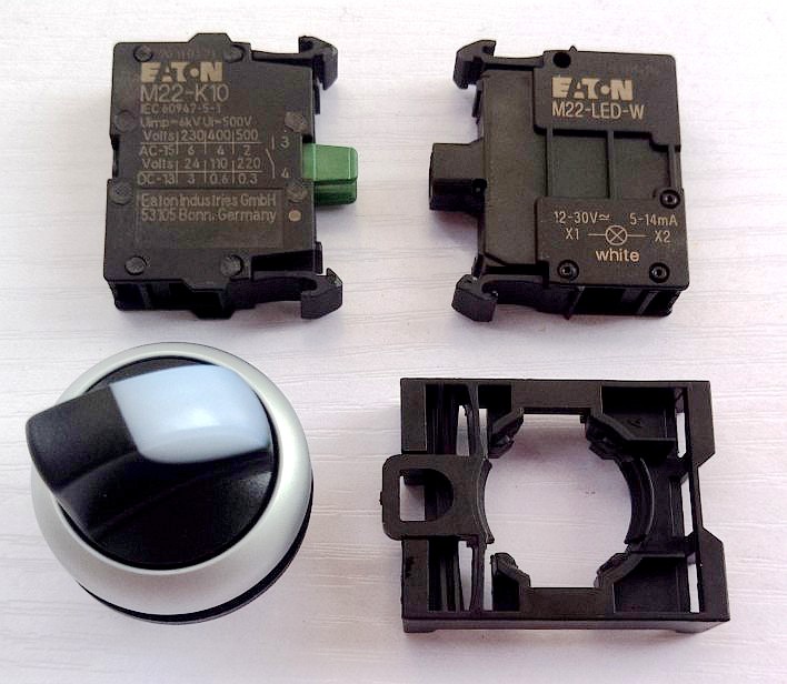Eaton 2 stalls 3 white with lamp knob Select switch ETN M22-WLK WRLK3-W M22-K10 M22-K10