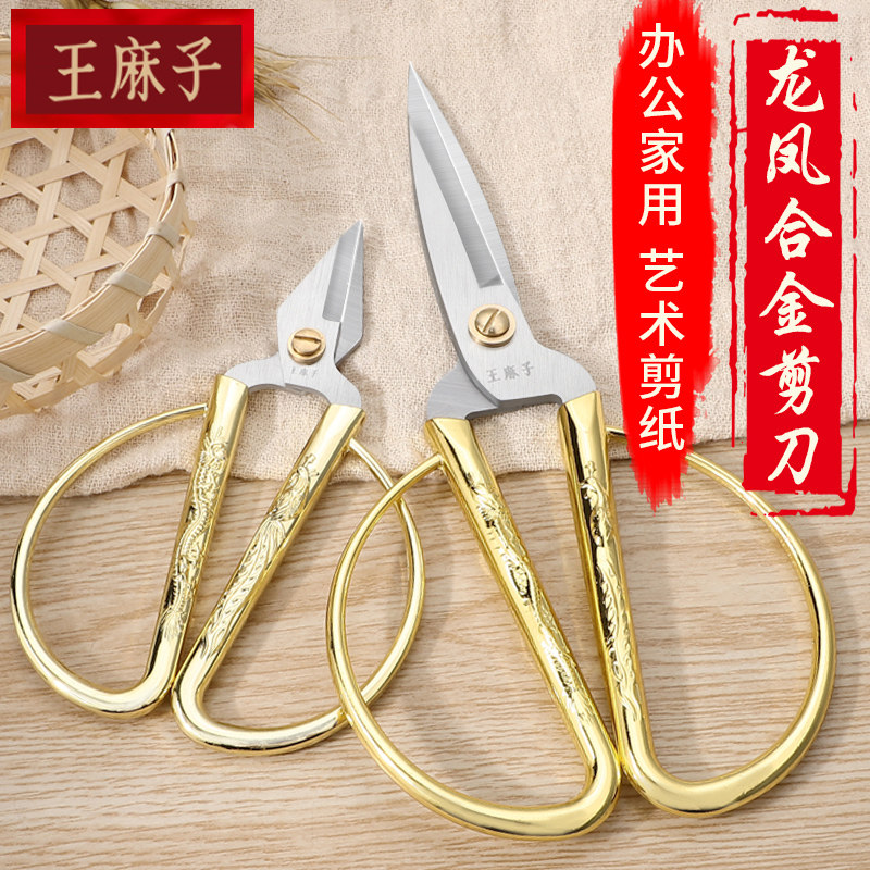 Wang Mazi scissors household trumpet cutting thread head sharp tailor paper cutting scissors sewing scissors industrial ribbon cutting dragon and phoenix scissors