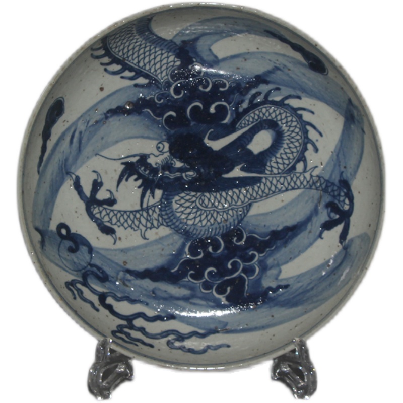Jingdezhen glazed under glazed hand-painted green flower dragon tattoo (over wall dragon) pan folk kiln sand bottom iron mole kiln cracked ancient play collection-Taobao