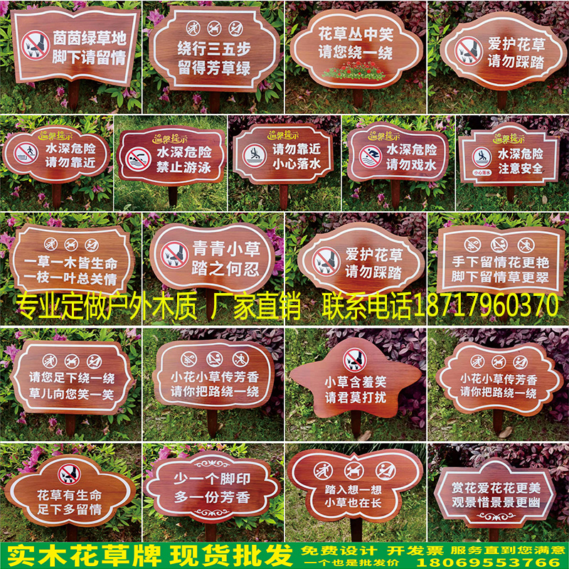 Outdoor anti-corrosive wood publicity column Flowers And Grass Signs Warning Signs Warning Signs Scenic Spot Signs Guide Cards Standing Finger Road Signs-Taobao