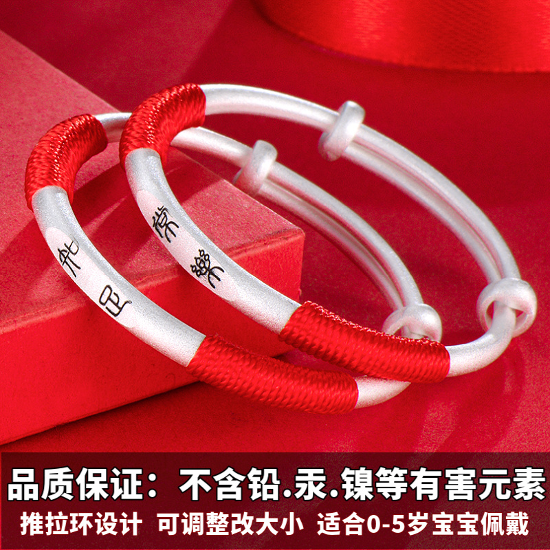 Foot Silver 9999 Ancient Method Pass On Baby Pure Silver Bracelet Push-pull Opening Solid Matt Wire Drawing Baby Small Seal Bracelet