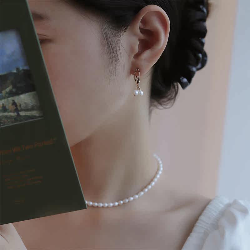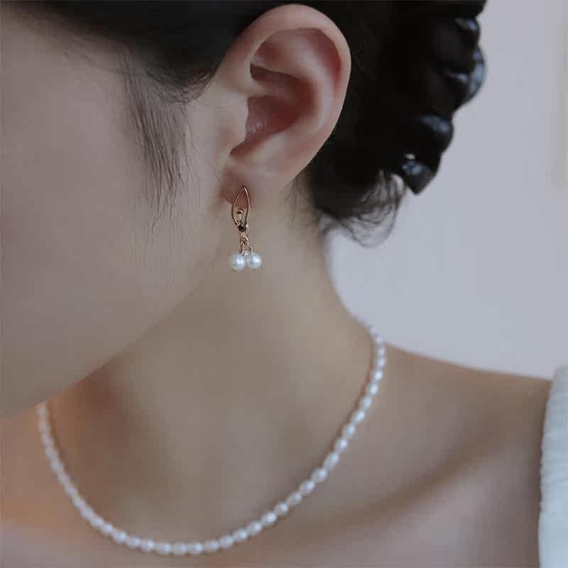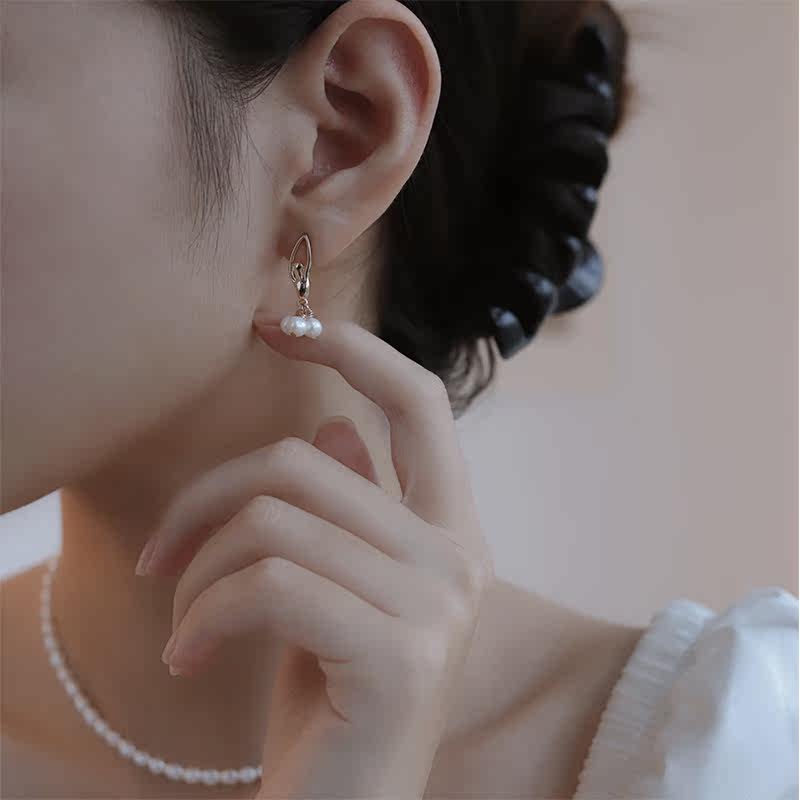 Original Design Natural Freshwater Pearl Earrings Earrings Woman Elegant Temperament Comeback 925 Pure Silver Anti-Allergenic Gold Earrings