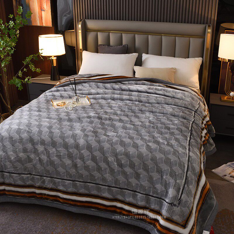 Hengyuanxiang velvet super soft blanket Raschel warm blanket autumn and winter plain gray double bedroom winter blanket