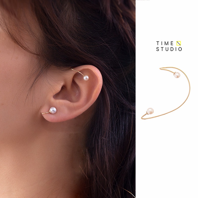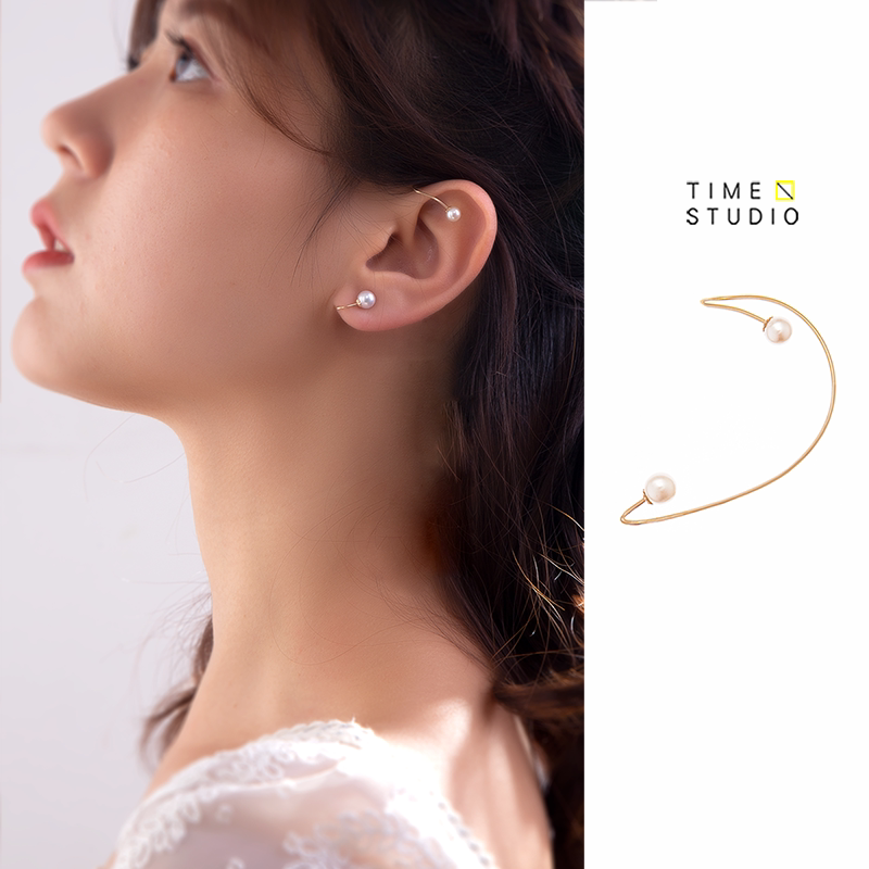 TIME original simple temperament freshwater pearl ear clip ear bone clip ear hanging without ear hole ear hanging one-sided earrings female