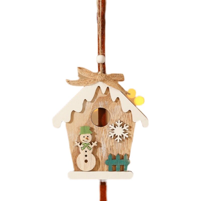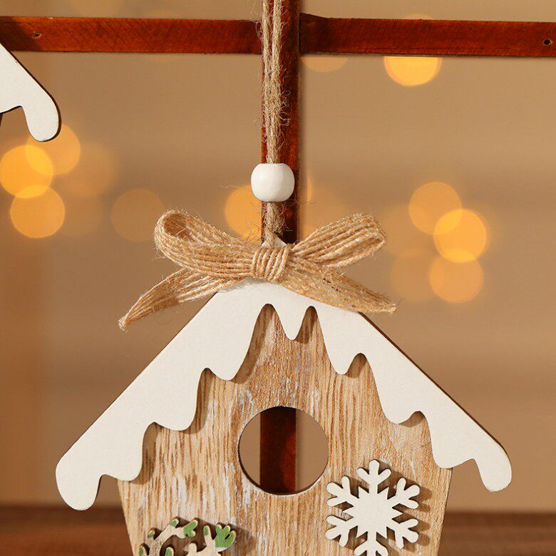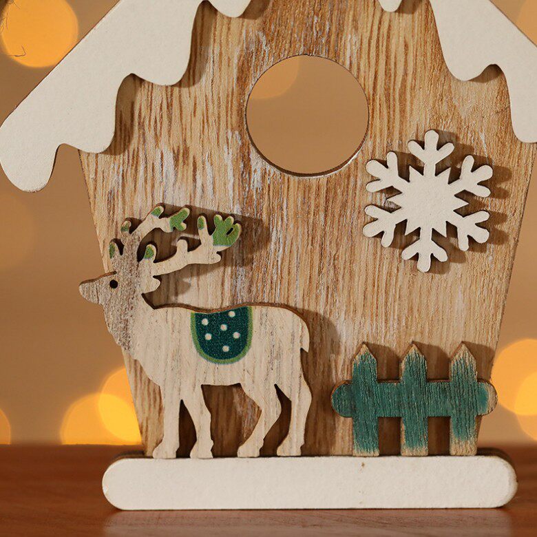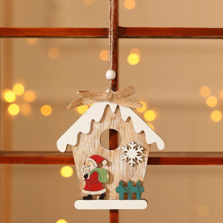 Single-side wood snow house Snow house wooden house Christmas tree pendant hanging decoration DIY Christmas decorations elk old man
