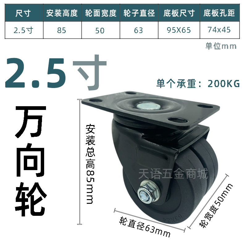 2 5 inch heavy duty swivel nylon CFL01-D63 casters industrial low center of gravity CFK01-D63 instead of double wheels