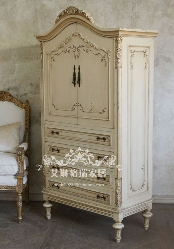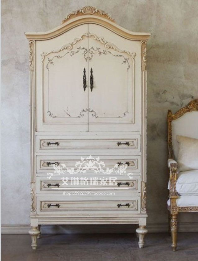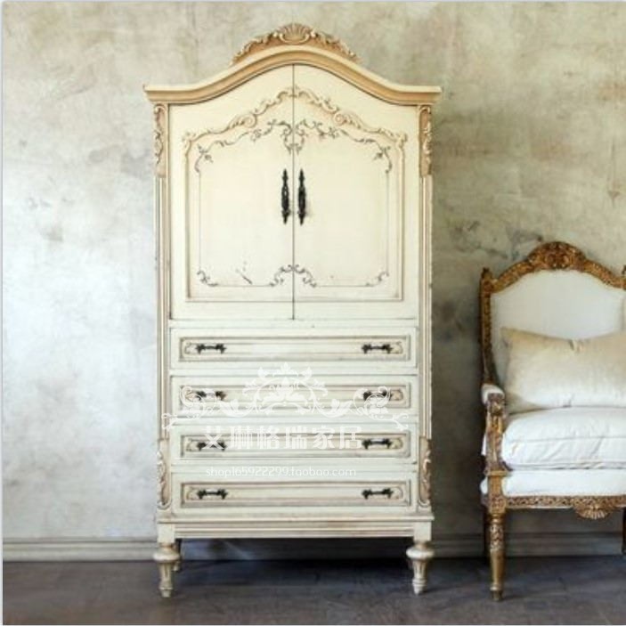 Fave Retro Carved Solid Wood Two Doors Wardrobe American Countryside Made Old Double Door Closet with drawers Children's storage cabinets