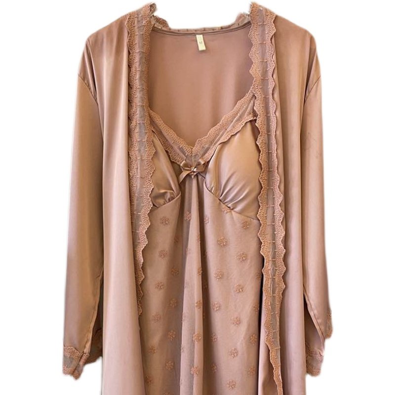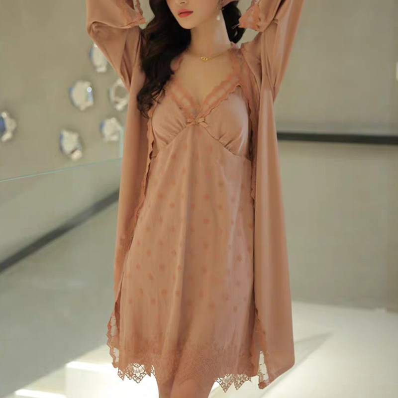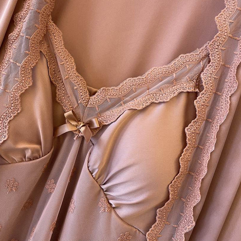 Smooth silk dress in 2023 new spring and autumn silk bathrobe sexy lace hanging dress