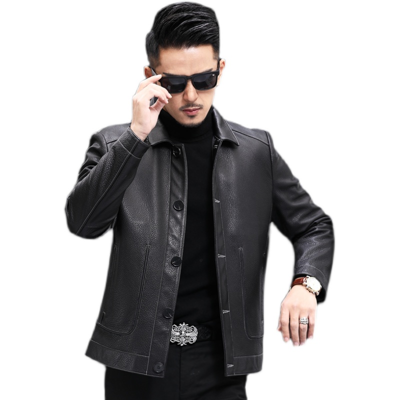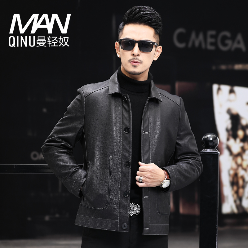 Haining genuine leather jacket men's deer grain goat leather lapel short thin casual leather jacket slim single layer leather jacket autumn