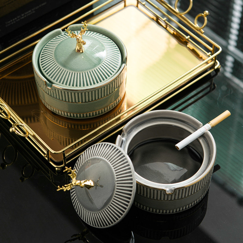 Windproof Ashtray Light Luxury LUXURY CREATIVE PERSONALITY TREND HOME LIVING ROOM WITH LID EUROSTYLE CERAMIC OFFICE ASH TRAY