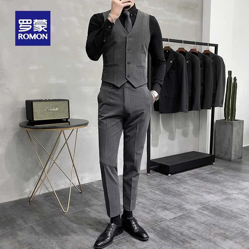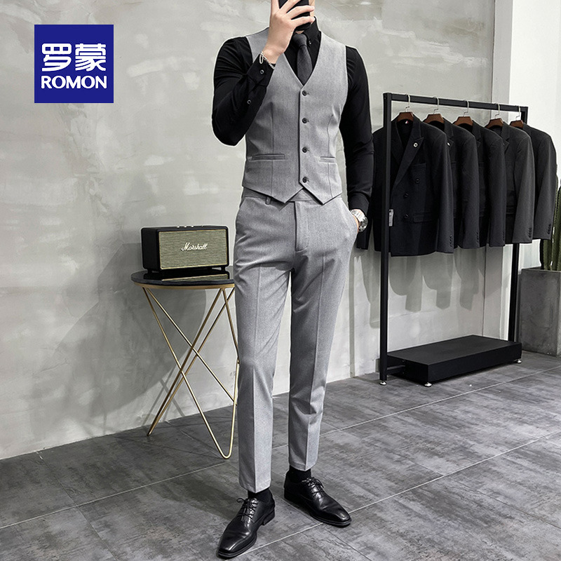 Romon suit vest suit male wedding best man group dress business casual work work clothes vest two-piece set