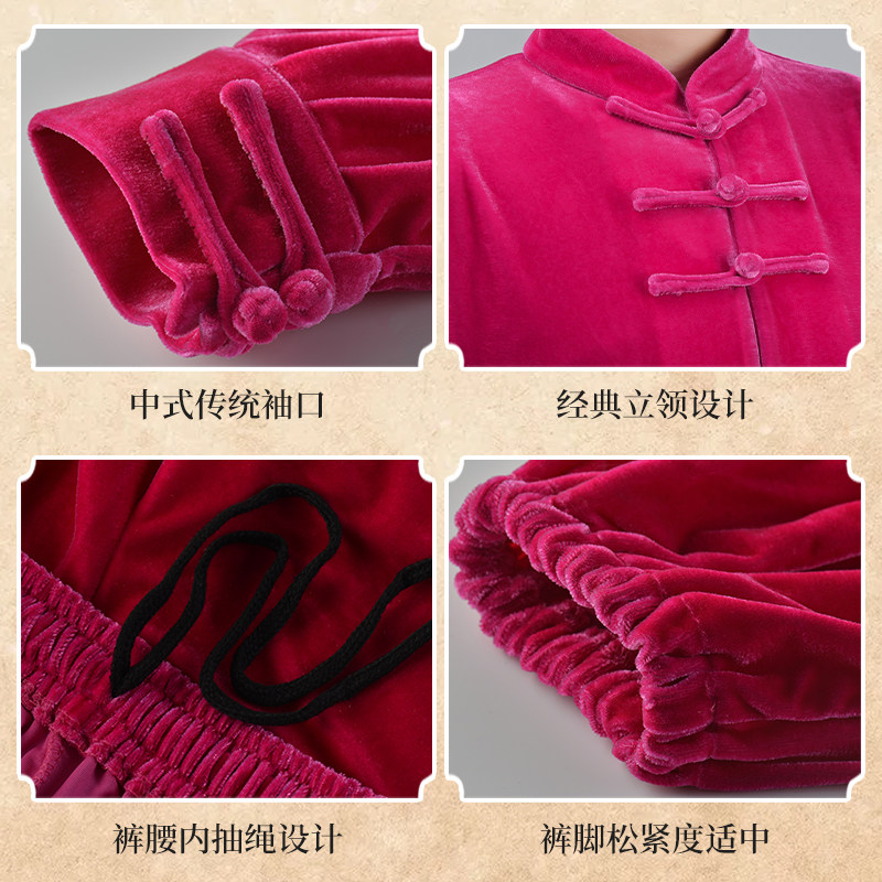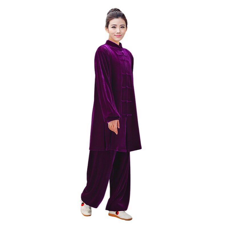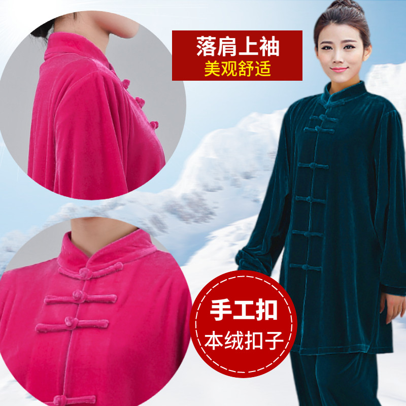 Thickened Gold Velvet Tai Chi Clothing Women's Autumn Winter Medium Long Version Martial Arts Practice Taijiquan Men's Competition Performance Wear and Morning Exercises