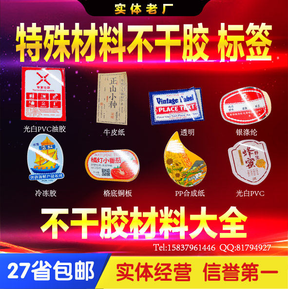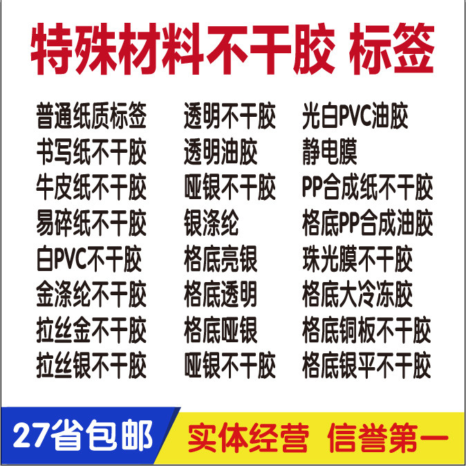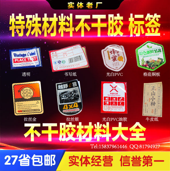 Ordinary paper label paper paper non-adhesive kraft paper non-adhesive rubber white PVC non-adhesive rubber polyester rubber pull gold steel rubber drawing silver steel steel silver transparent adhesive transparent oil dumb silver