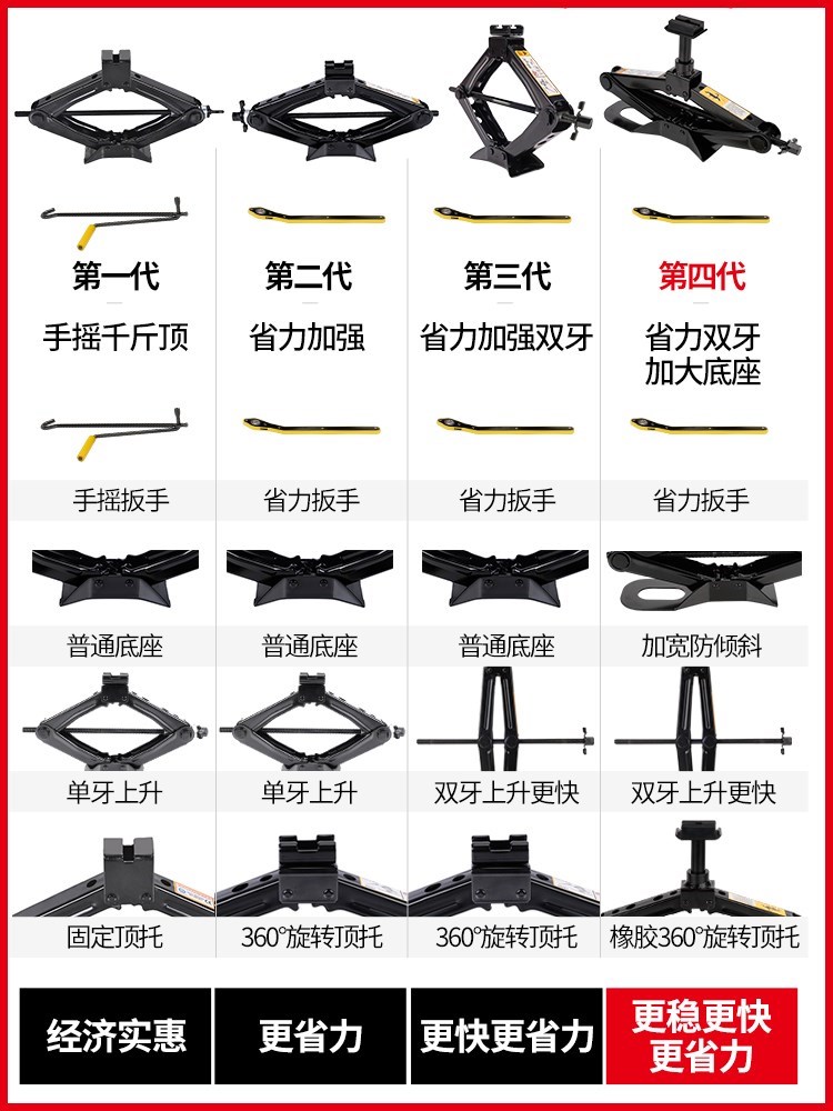 01 ton jack (single tooth hand-cranked first generation) with 02 ton reinforced jack (anti-tilt large base double 02 ton jack (anti-tilt large base double tooth saves 1 ton jack (single tooth hand-cranked one
