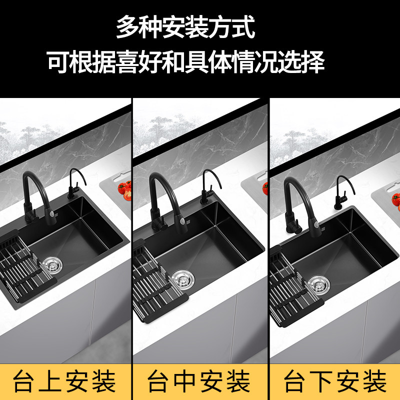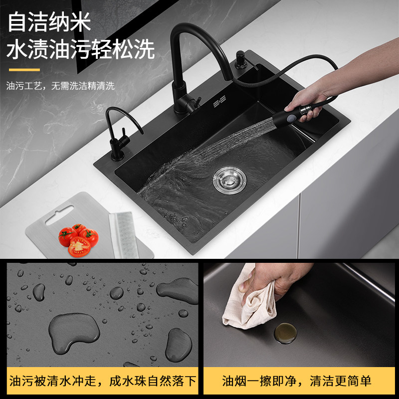 Black nanosink sink sink dishwasher pool kitchen pool household thickness 304 stainless steel large