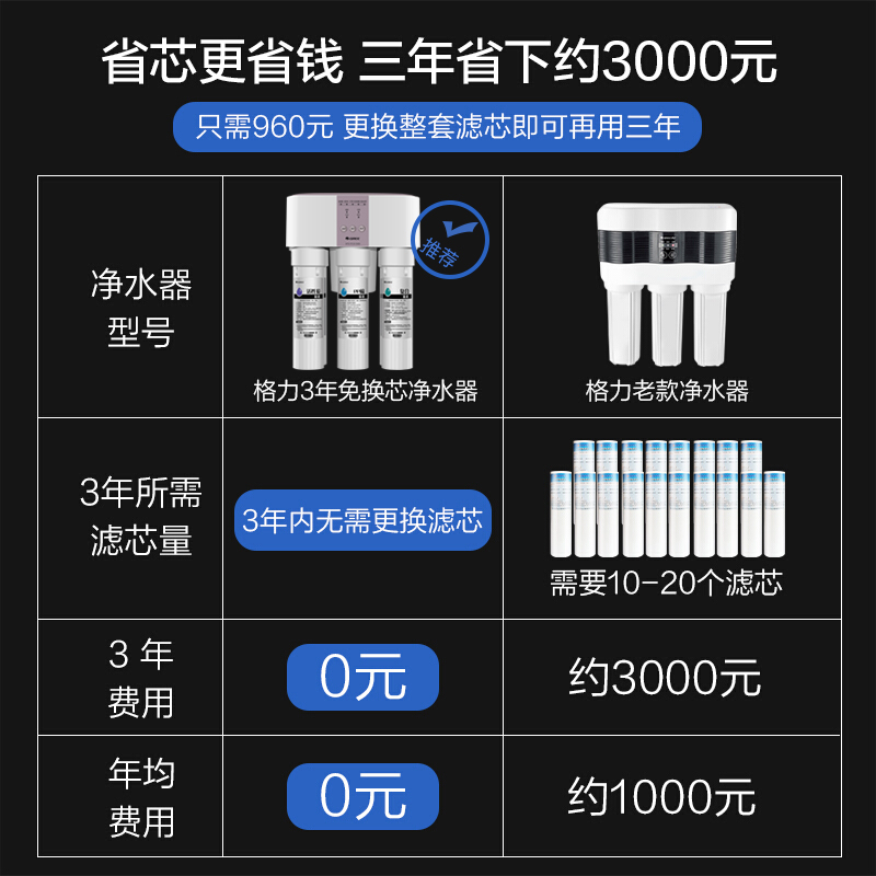 Gree three-year core-free water purifier reverse osmosis direct drinking natural water filter WTE-PC16-5086
