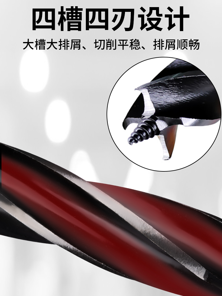 Electric starter drill bit woodworking drill reaming support drill four-edged four-slot wooden board drilling special punching drill