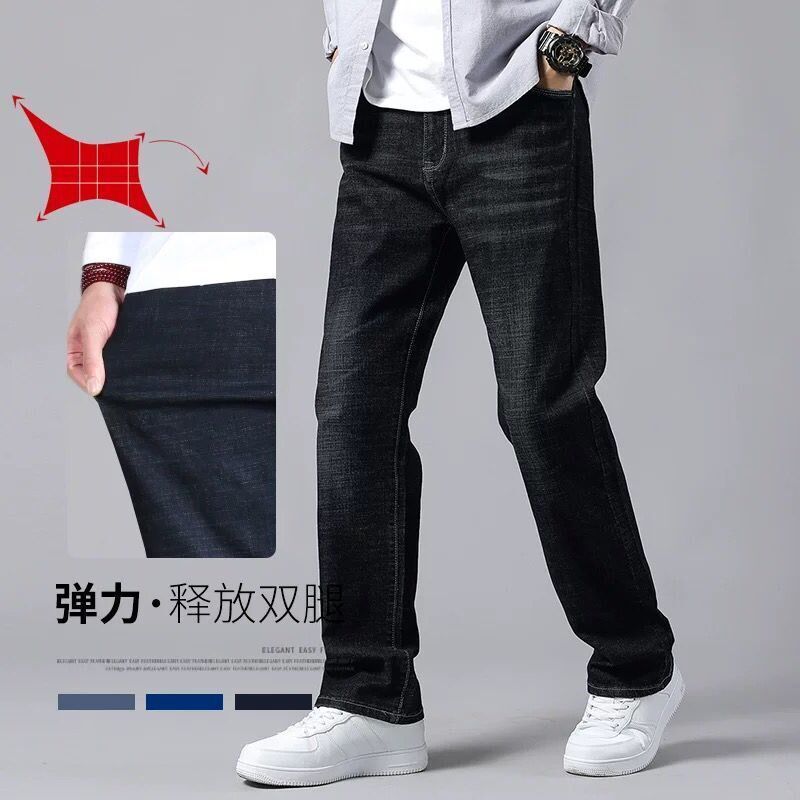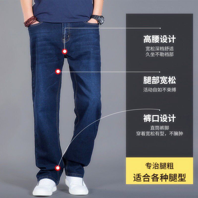 Men's stretch jeans straight loose large size trousers summer fat plus fat plus size high waist fat guy pants