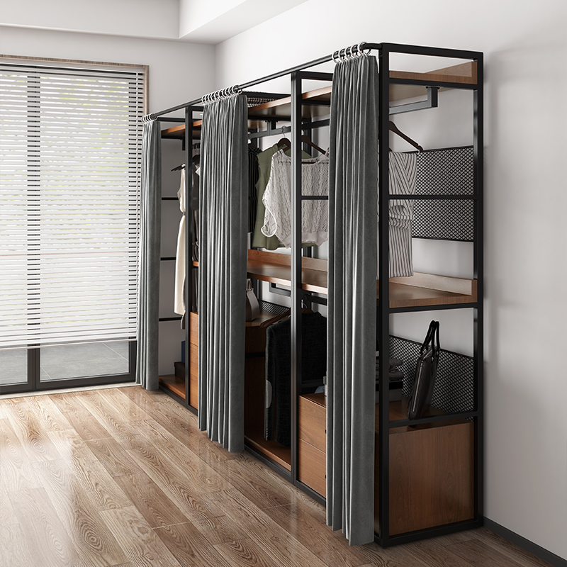 Walk-in Wardrobe Rack Cloakroom Shelf Loft Metal Iron Art Open Hanger Industrial Wind Hung Hanger