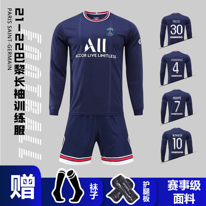 Long-sleeved football suit suit men's autumn and winter adult football training suit custom group buy Neymar Paris Messi jersey