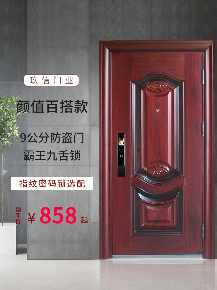Anti-theft door home entry door wood grain steel door security apartment unit indoor room door into the outdoor single door