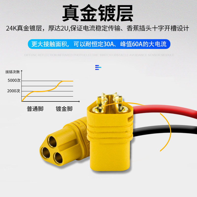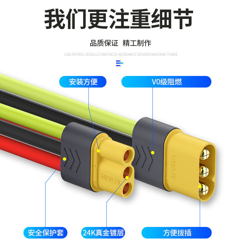 MT30 MR30 MT60 lithium battery three-core power connector banana plug socket male and female head balance car