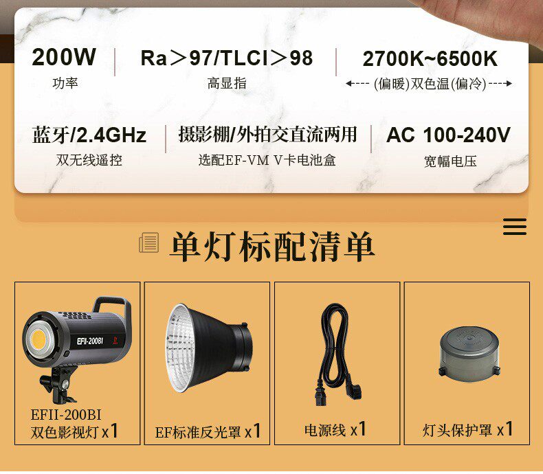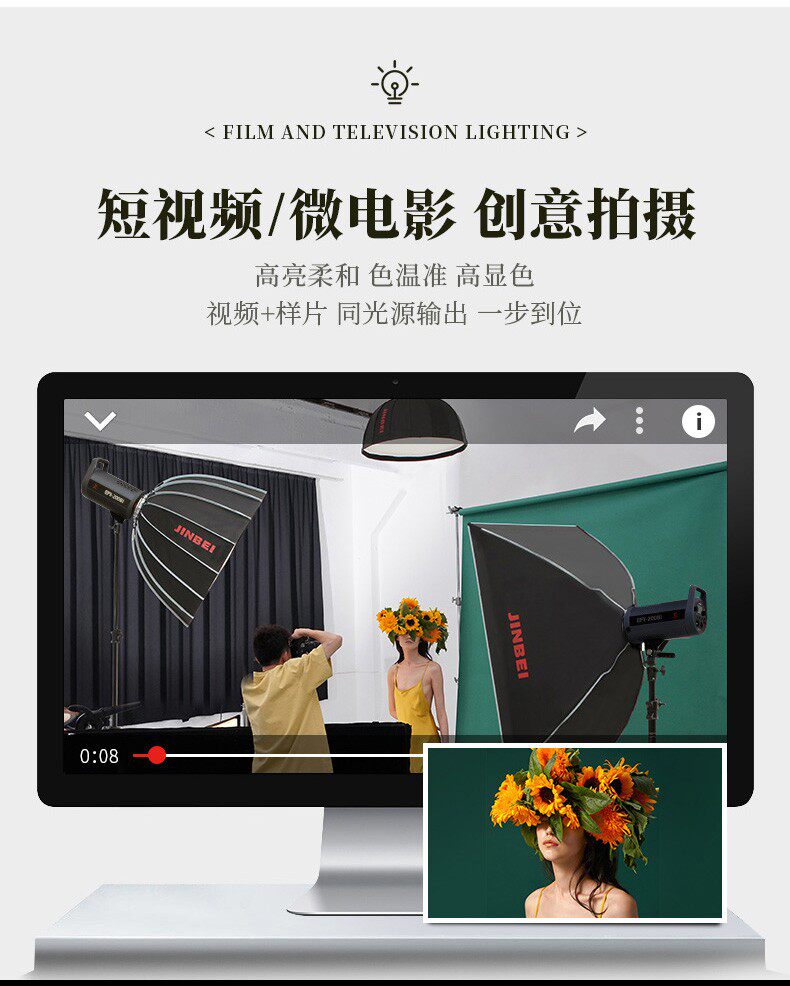 Jinbei LED photography light EFII200BI video film film shooting fill light adjustable two-color temperature constant light