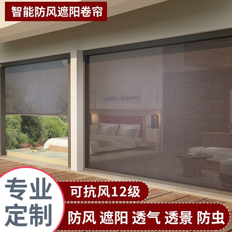 Balcony windproof roller curtain Courtyard Pavilion insulation sunshade sunscreen mosquitoes outdoor lifting electric vertical window