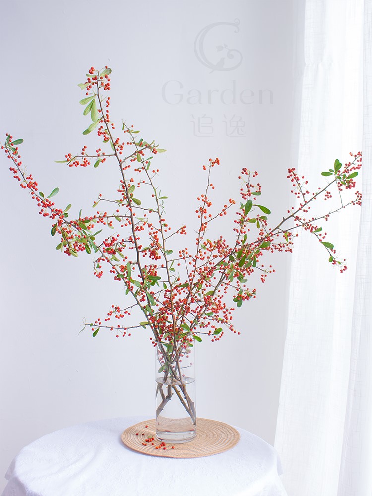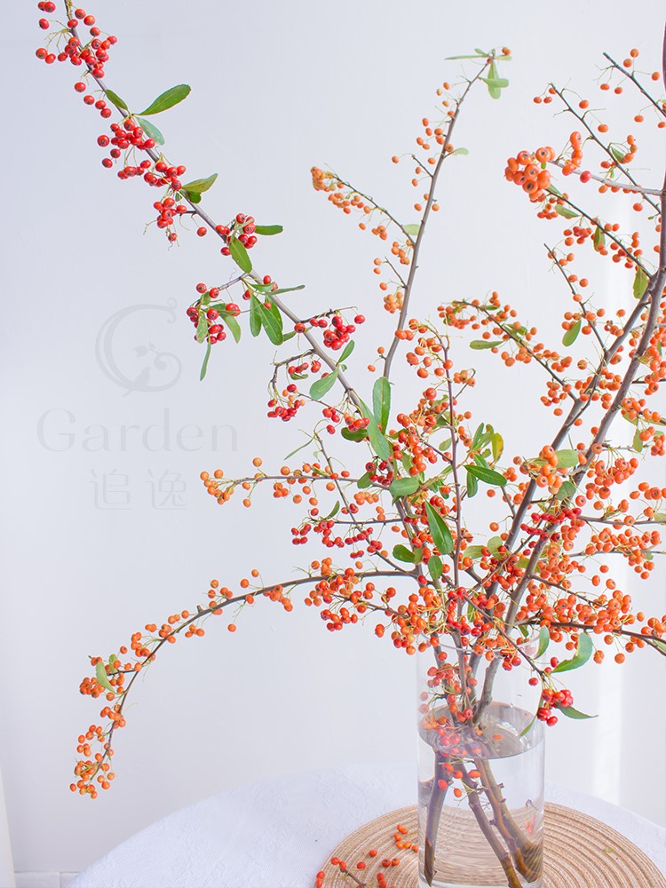 Homemade fire thorn fruit small fruit fresh chopped branches orange red bean flowers Heqing true florist with water for a flower arrangement friend's wedding-Taobao