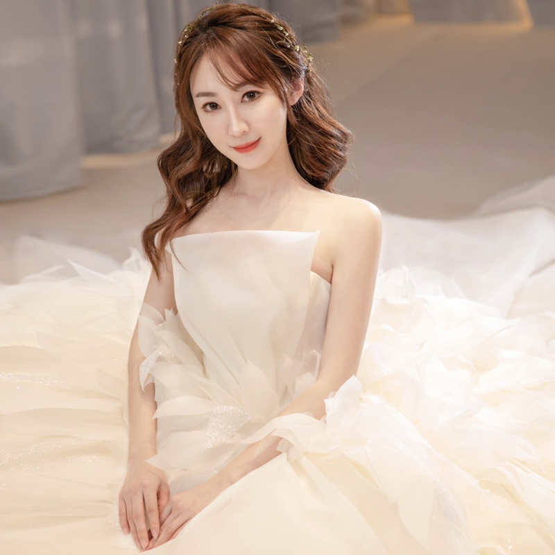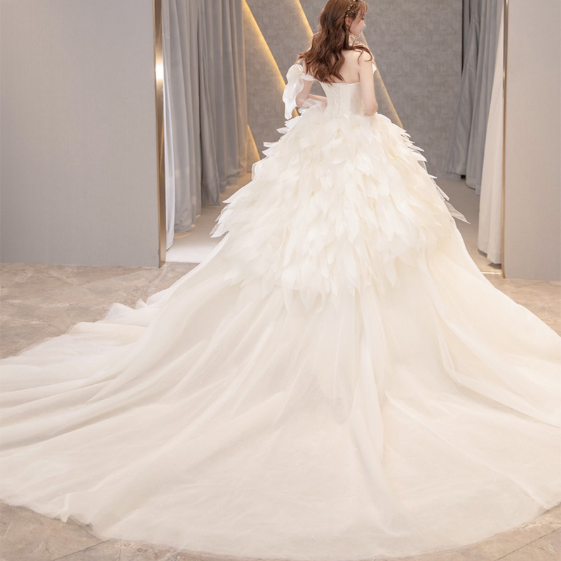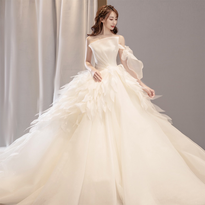 Style Heavy Industry 2021 new bridal main wedding dress Long sleeves high-end palace High-end Texture trailing luxurious tail spring summer