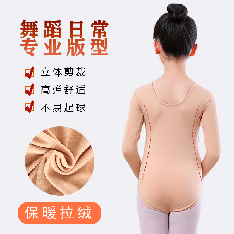 Children's dance clothes, long-sleeved flesh-colored bottoming clothes, heating clothes, girls' exercise clothes, one-piece clothes, invisible velvet tight-fitting