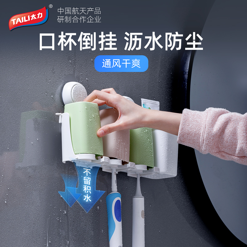 Taili dressing room wall-mounted drain set toothbrush holder electric storage box mouthwash cup punch-free toothbrush rack